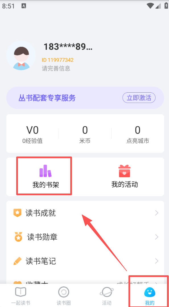 4、在 “我的” 页面,点击 “我的书架”,可查看个人的书籍收藏情况,还有读书成就、勋章等功能可使用。