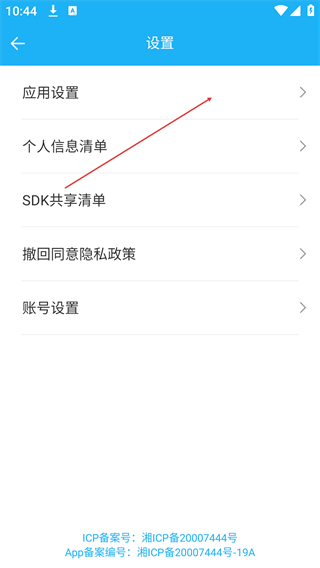 3、在设置页,点击【应用设置】选项,进入应用相关配置界面。