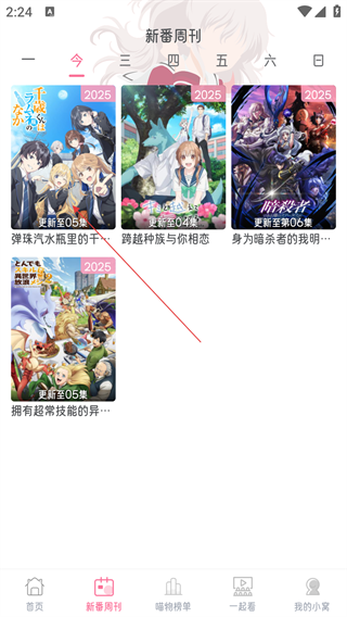 2、在新番周刊界面,查看《弹珠汽水瓶里的千岁同学》《跨越种族与你相恋》等新番,了解更新进度。