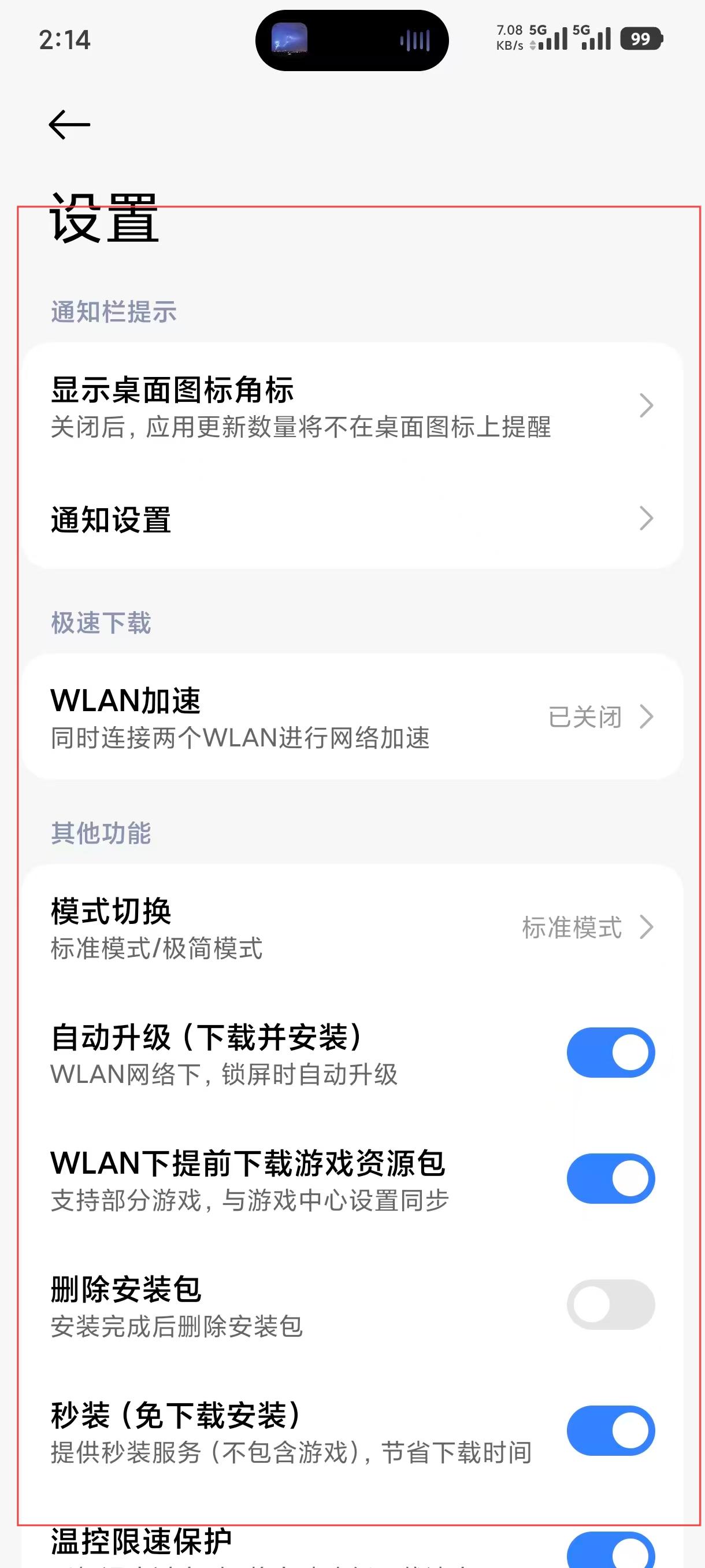 3、在设置界面中,找到【删除安装包】选项,该功能可在应用安装完成后自动删除安装包,点击开关可启用或关闭。