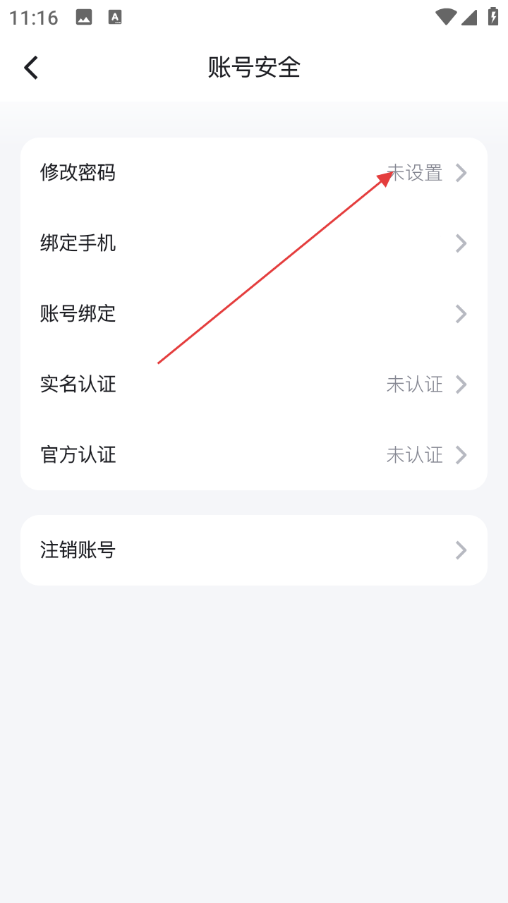 3、在设置界面,点击【账号安全】选项,进入账号安全设置页面。