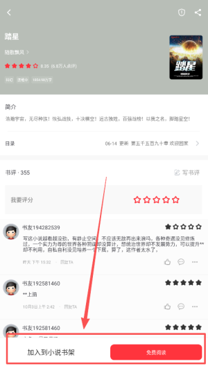 4. 评论互动:用户可以对小说进行评论,与其他读者互动交流。