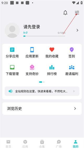 2、进入“我的”页面,点击页面右上角的设置入口可进入功能配置界面。