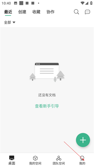 1、在文档界面底部点击【我的】进入个人页,可查看【新手引导】,也能通过绿色加号按钮创建新文档。