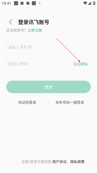 3、在【登录讯飞账号】页,密码遗忘可点击【忘记密码】重置。