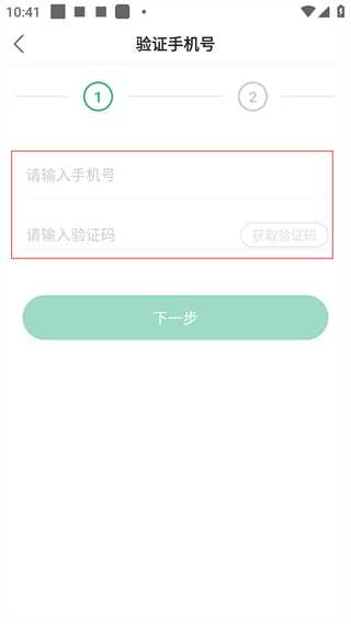 4、在【验证手机号】步骤中,需填写手机号、获取并输入验证码,完成后点击【下一步】推进验证流程。