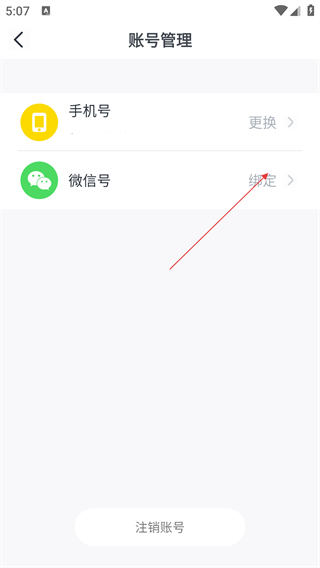 4、在账号管理界面,可绑定微信号,也可更换手机号、注销账号,方便对账号进行个性化管理。