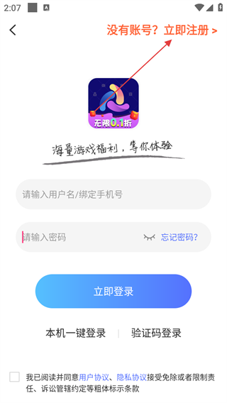 3、在登录界面,点击右上角【立即注册】选项,进入账号注册界面。