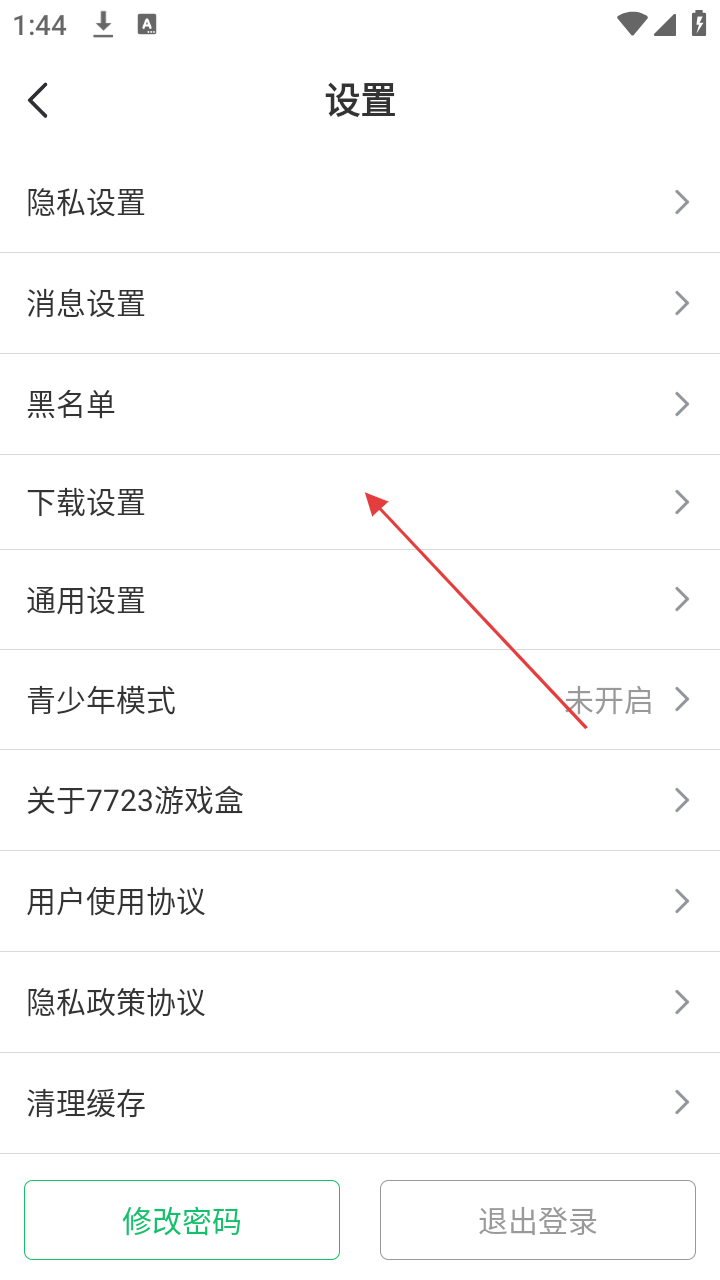 3、在设置页面,点击【下载设置】选项,可进入下载设置页面。