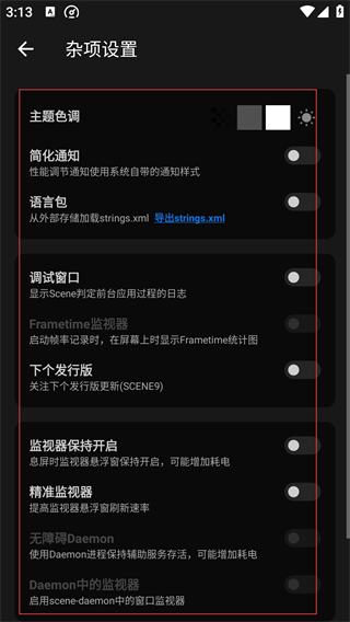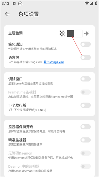 3、在杂项设置界面,可选择深色主题色调,切换应用界面的显示风格。