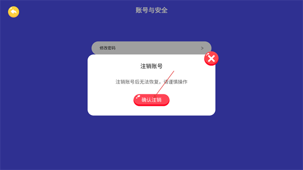 4、在确认弹窗中点击【确认注销】按钮,完成账号注销。