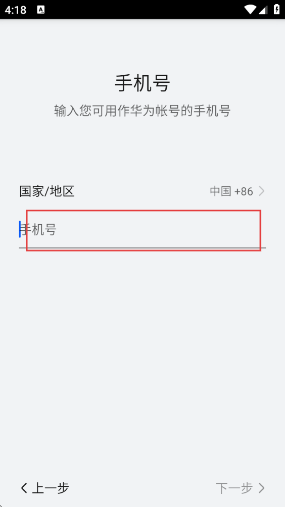 4、在手机号输入页面,输入可用作华为帐号的手机号码,按照提示完成后续注册流程,即可创建华为帐号,享受华为终端云服务。