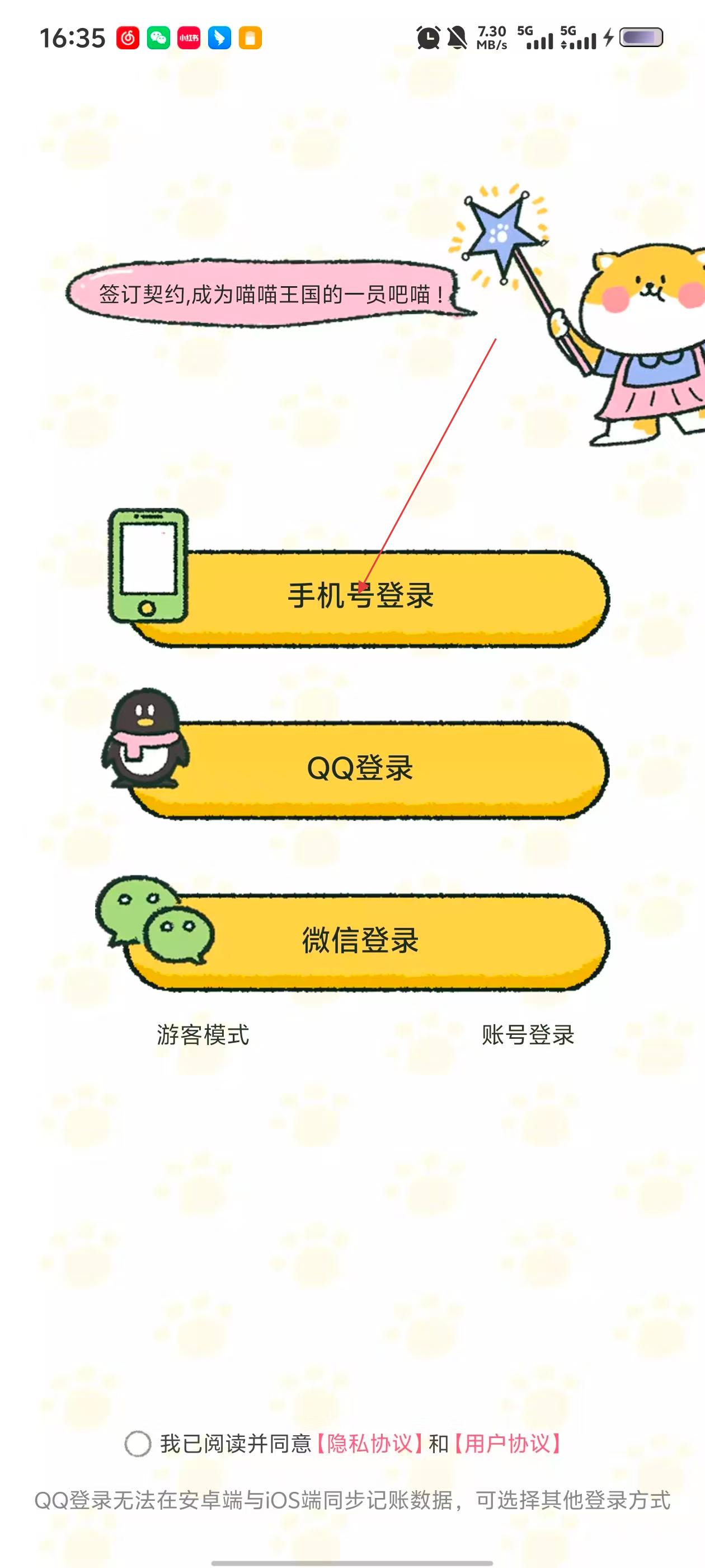 2、进入登录界面后,可选择【手机号登录】【QQ登录】【微信登录】,注意QQ登录安卓与iOS端数据不同步,可选其他方式。