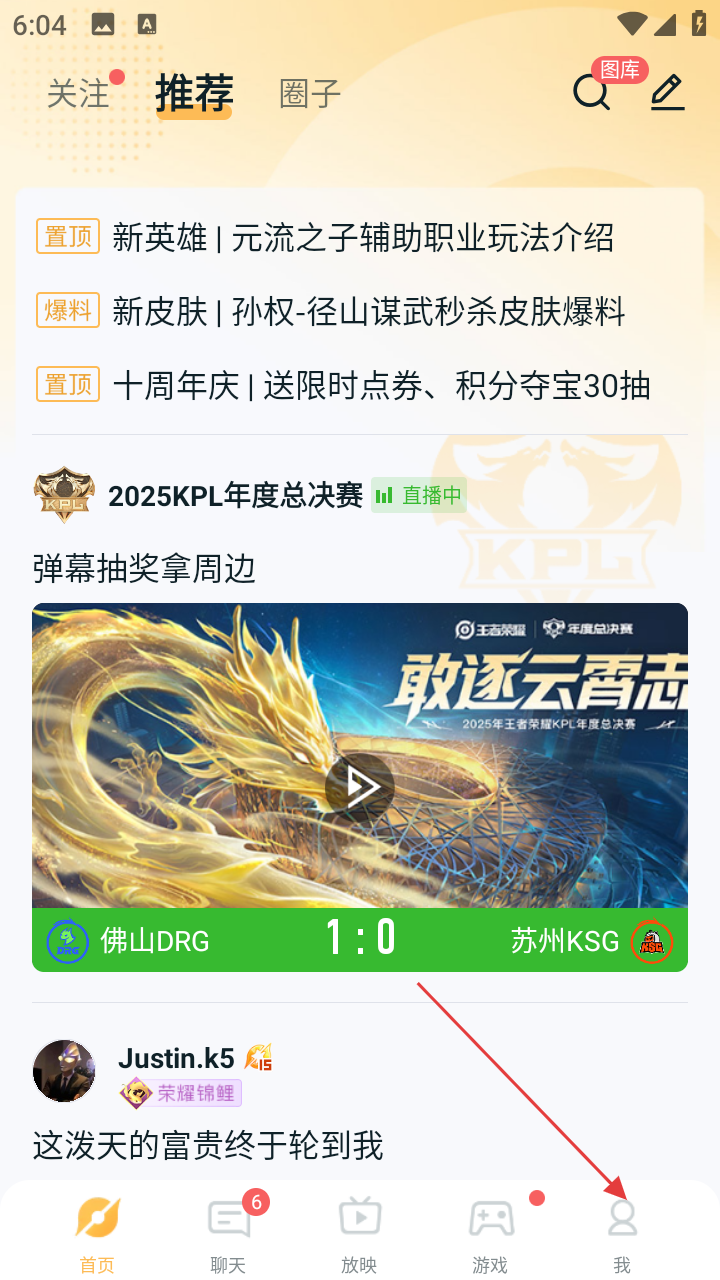 1、在王者营地首页,可浏览推荐内容,若要进行认证相关操作,点击底部【我】,进入个人页面。