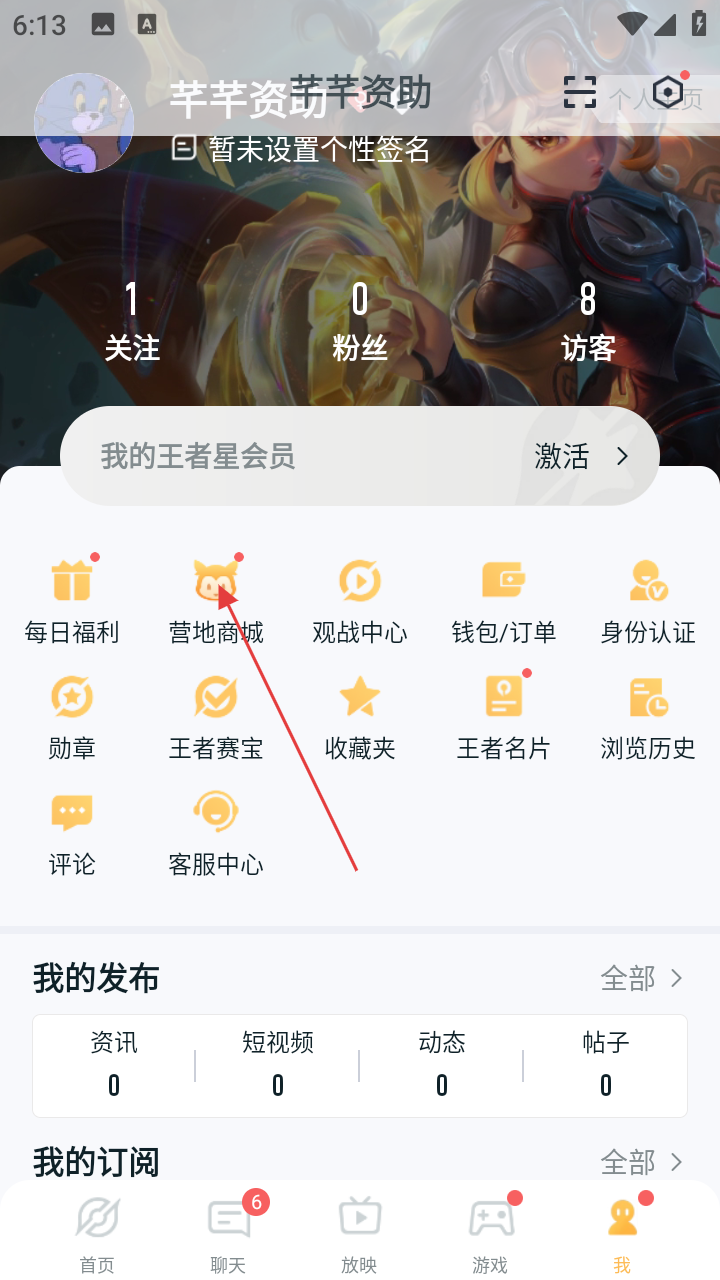 2、在个人页面,找到【营地商城】选项并点击,进入营地商城页面。
