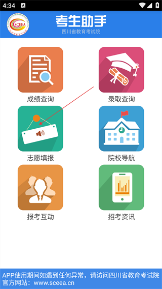 1、点击【开始体验】,进入由四川省教育考试院提供的“考生助手”主界面。