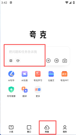 2、其次,进入夸克应用,点击底部导航栏的“网盘”图标。