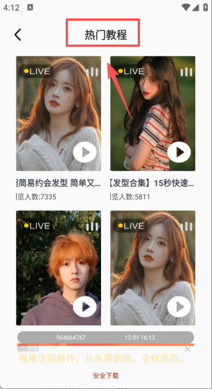 1、先浏览热门教程,15秒学会约会发型再安全下载素材。