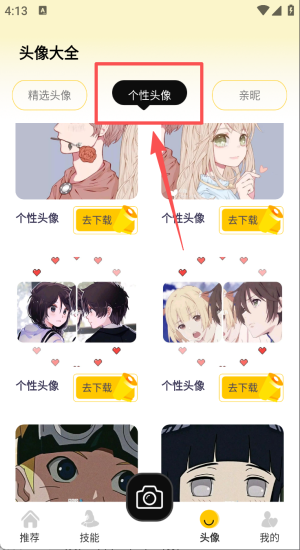 3、点开头像大全挑个性头像,点击去下载立即保存备用。