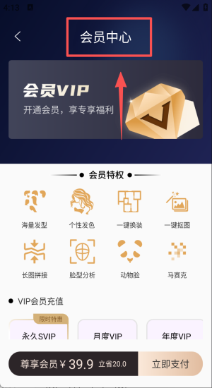2、进会员中心选永久SVIP,一键解锁换装抠图海量福利。
