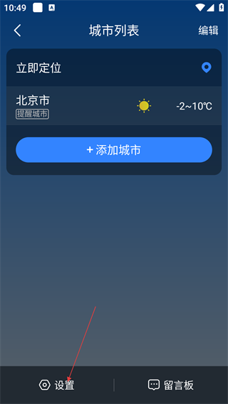 2、进入城市列表页面,再点击底部的【设置】选项,进入设置界面。