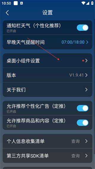 3、在设置界面,选择【桌面小组件设置】选项,进入桌面小组件配置页面。