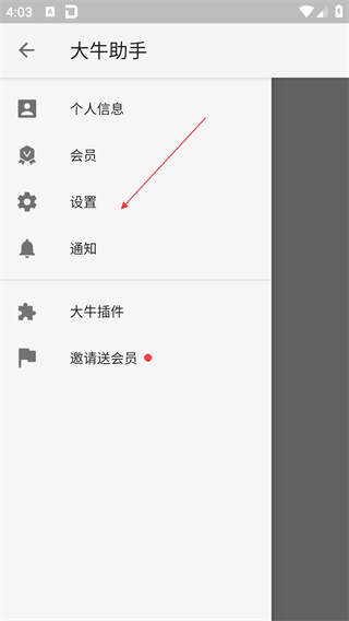 3、在菜单中点击【设置】选项,进入配置页面,查看“个人信息”“会员”等功能选项。