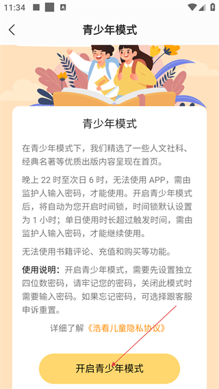 浩看免费小说怎么开启青少年模式