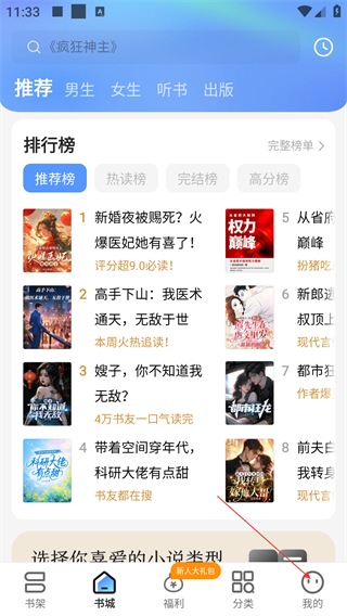 答:点击底部菜单栏的书架图标,即可查看书架。