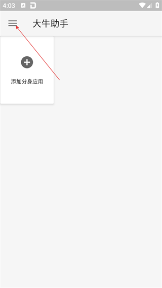 2、在主界面点击左上角【菜单】按钮,展开功能列表,可选择“添加分身应用”等操作。
