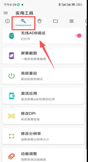 2、进入实用工具开启无线ADB,点屏幕截图或高级重启激活功能。