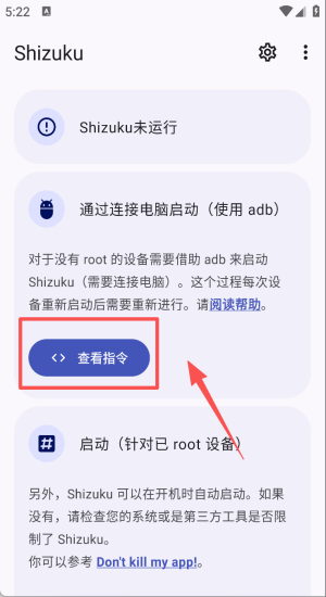 安卓11以下版本的手机需要使用电脑通过ADB命令来启动Shizuku;