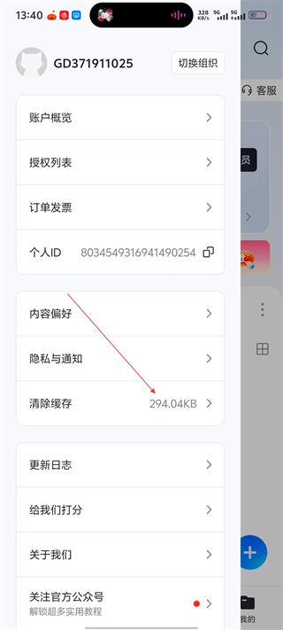 4、在【稿定设计】个人设置界面,可查看账户概览、授权列表等,还能进行清除缓存操作,方便管理软件使用数据。