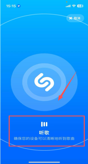 1、打开Shazam后轻点中央按钮,确保麦克风靠近音源再松手。