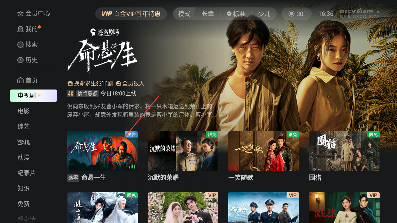 2、在电视剧页面,有《命悬一生》等剧集推荐,点击《命悬一生》可进入该剧详情页面。