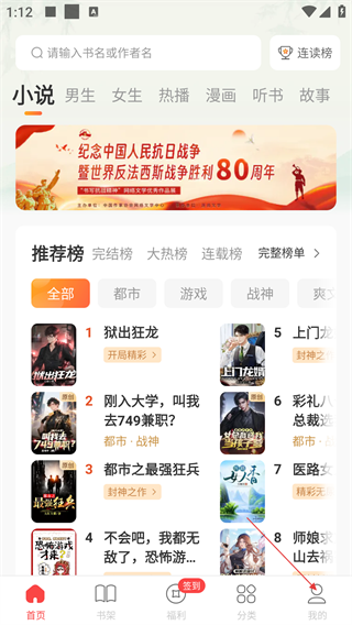 1、打开连尚读书APP,进入【首页】可浏览小说推荐榜,有男生、女生、热播等分类,还能搜索书名或作者名找书。
