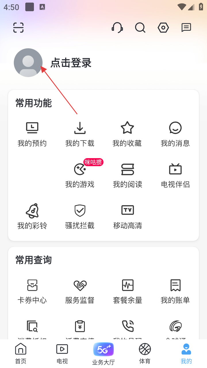 2、在个人页面,点击头像旁【点击登录】,即可进入登录流程,进行账号登录操作。