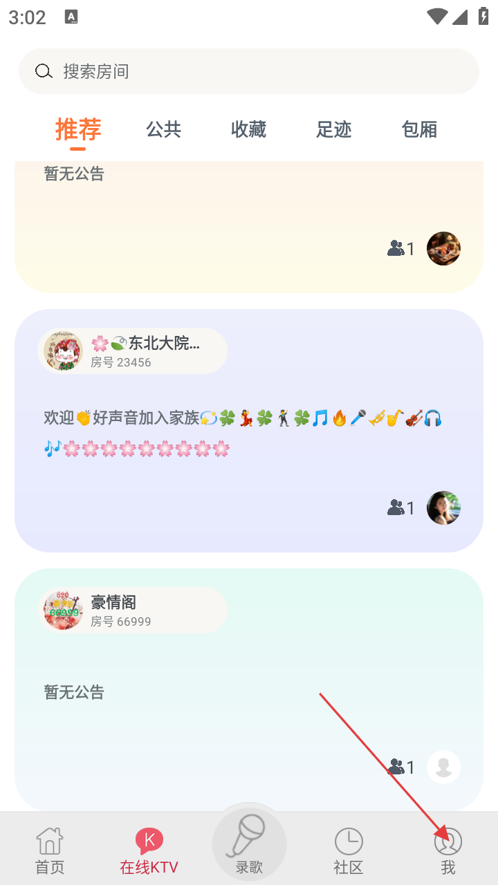 1、在k歌达人界面,若要进入个人相关页面,点击右下角【我】选项。