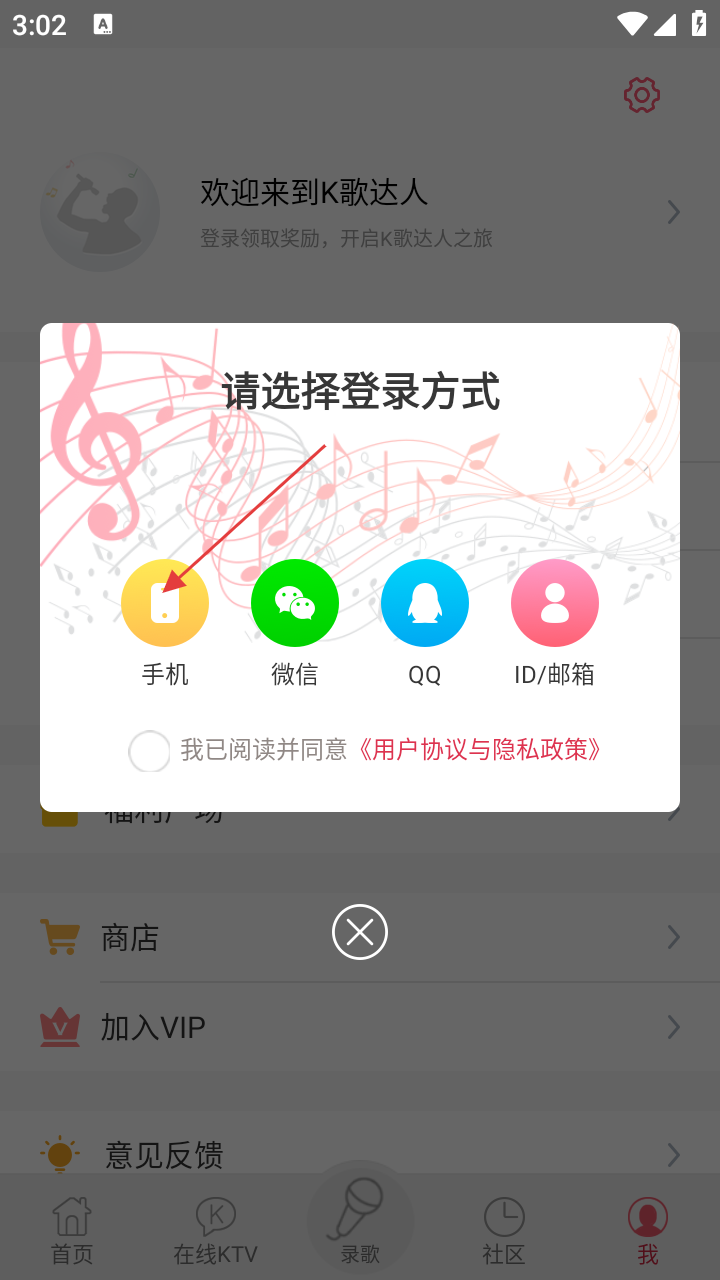 3、点击后会弹出登录方式选择窗口,若选手机登录,点击【手机】选项。