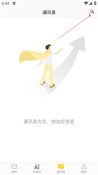 2、进入【通讯录】界面后,点击右上角添加联系人图标,即可开始新建联系人流程。