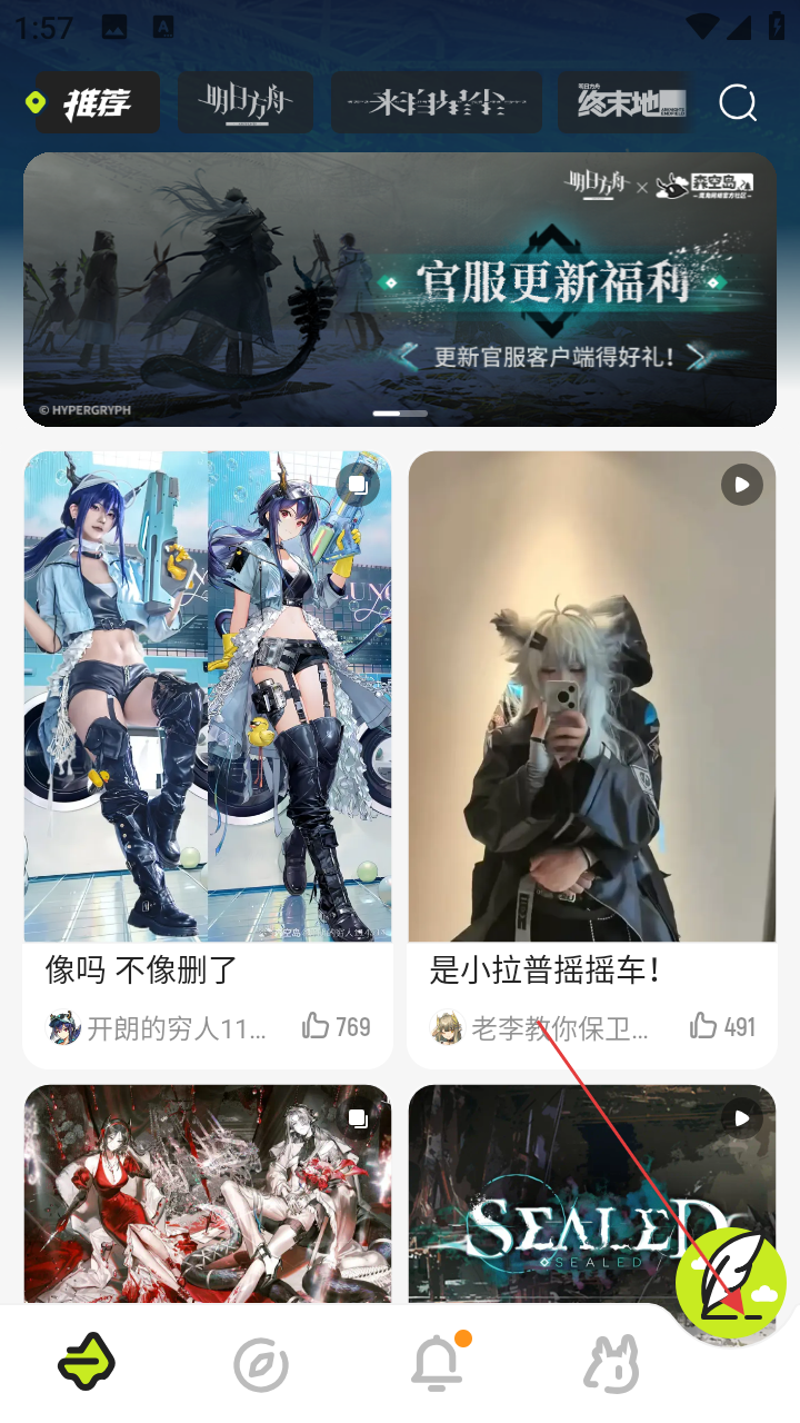 1、在森空岛首页,点击右下角带有羽毛图标的按钮,进入内容发布相关页面。