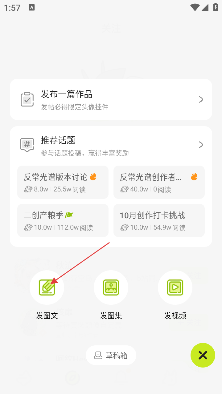 4、当然,大家也可以自己发表内容和文章,在“我的”页面,选择“发布”即可。(需要先完成创作者认证)