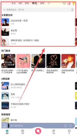 1、首先下载安装开心微微,完成注册后便可登录,进入音乐大厅后可以轻松浏览多种歌曲,开始你的唱歌之旅。