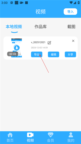3、在【视频】页面的【本地视频】栏,可对已录制的视频执行【导出】操作。