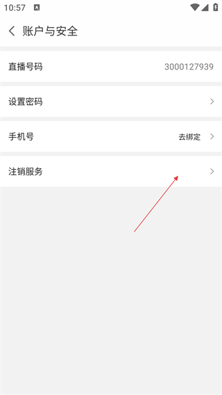 4、在【账户与安全】页面,点击注销服务即可进入注销账号流程。