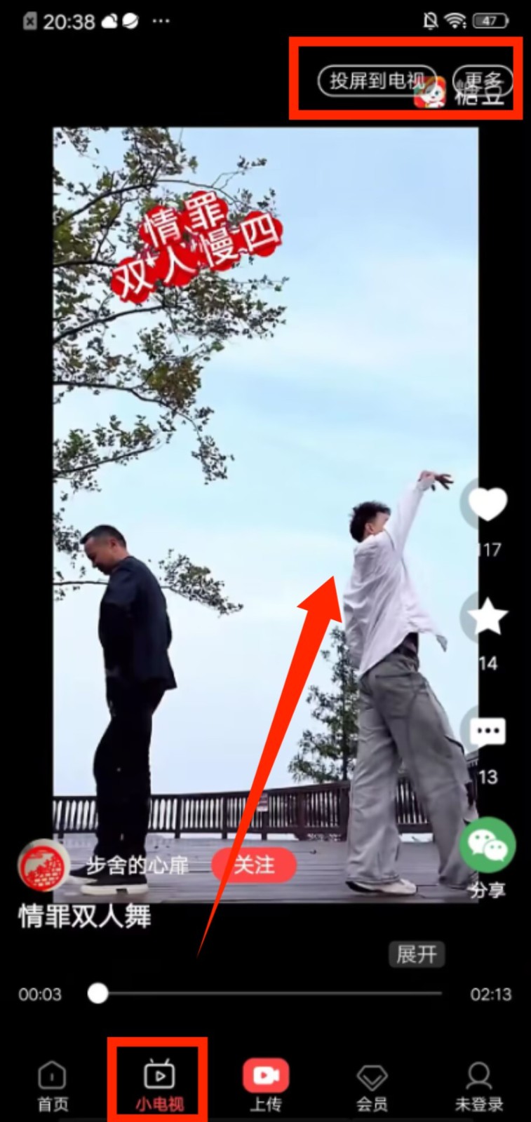 2、切换到小电视页面,打开视频播放界面后,可点击 “投屏到电视” 将内容投射到电视端观看。