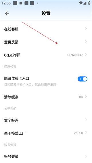 3、在【设置】页面中,找到【意见反馈】选项,点击可进入反馈界面,提交使用中遇到的问题或建议。