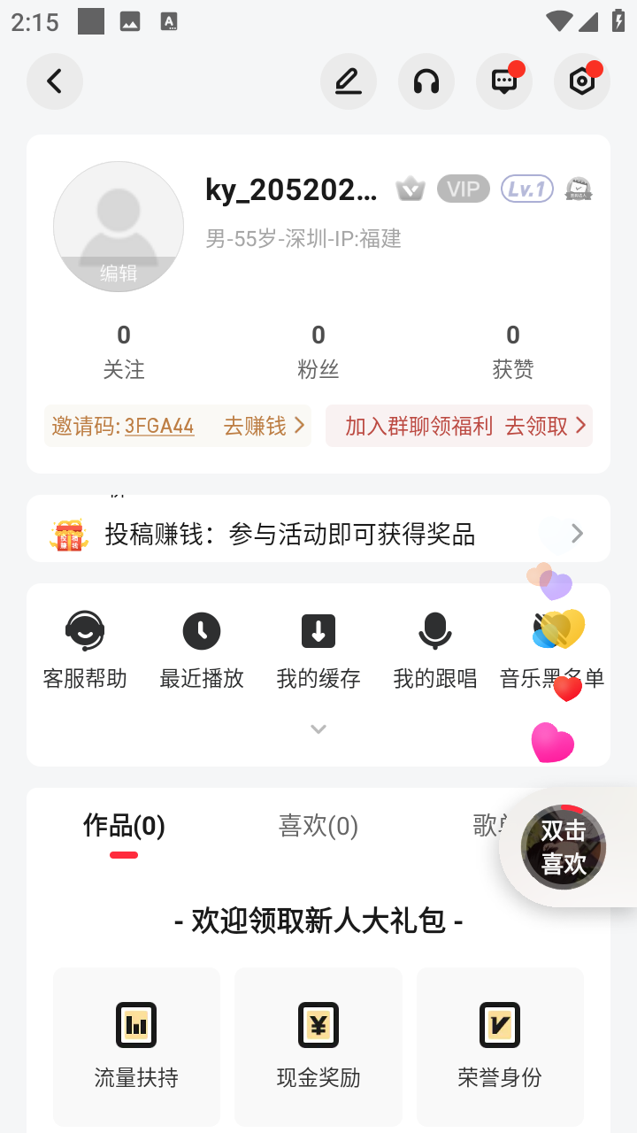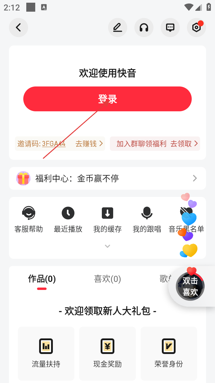 1、在快音APP首页,点击右上角个人头像图标,进入个人页面。