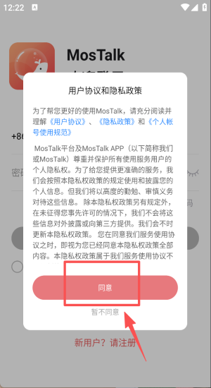 如何首次注册并登录MosTalk完成协议授权与密码找回