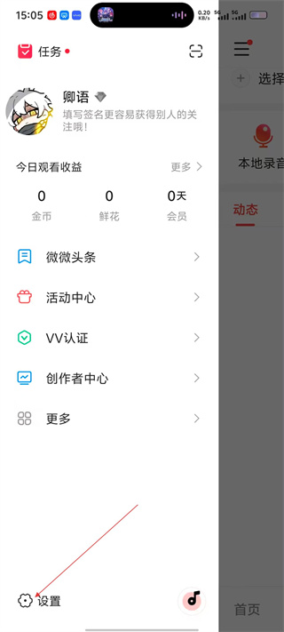 2、展开个人中心侧边栏,可查看【今日观看收益】,并通过【设置】入口进入系统配置界面。